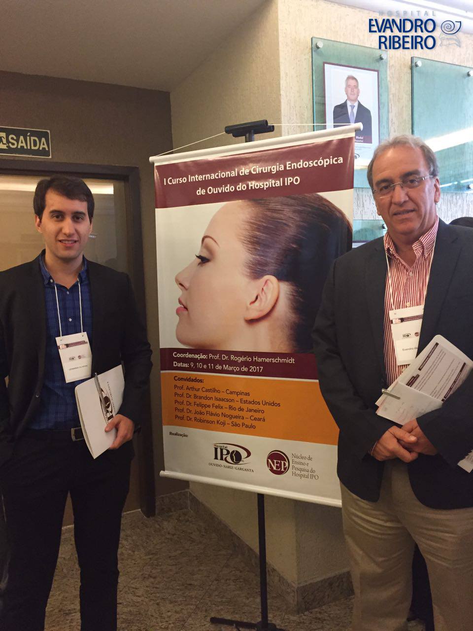 Dr. Leonardo e Dr. Evandro Ribeiro de Oliveira participam do 1º curso internacional de cirurgia endoscópica de ouvido do Hospital IPO.